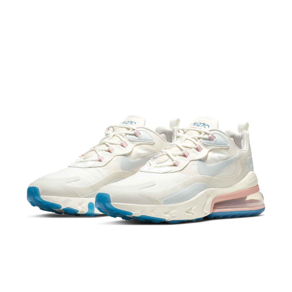 Beim Release des Modells hat Nike ein ganzes Arsenal an Farben, die nur darauf warten, veröffentlicht zu werden. Der freshe Nike Air Max 270 React nimmt mit der Iteration „Summit White“ sanfte Töne an. Nike hat offensichtlich große Pläne, da es die neue Komforttechnologie mit dem beliebten Air kombiniert. Diese Ausgabe erscheint so subtil wie möglich. Die neutralen Töne nehmen Summit White, Ghost Aqua und Phantom auf und lassen einen blauen Farbton auf der Außensohle erscheinen. Das Obermaterial besteht aus Summit White und Phantom Overlays, die ein cremiges Weiß mit einem Pastellrosa-Rosen-Farbschema kombinieren. Pinkfarbene Akzente fallen auf, da sowohl das Air Max-Unit als auch die Ösen lackiert werden. Die blaue Außensohle von Ghost Aqua rundet den Look ab und verleiht dem Sneaker einen fröhlichen Touch. Der Release steht mit dem 2. August schon quasi vor der Tür. Den Nike Air Max 270 React „Summit White“ bekommt ihr bei ausgewählten Retailern und nike.com.